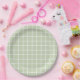 Grid Pattern Pastel Green Plaid Paper Plate