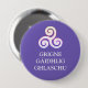 This button celebrates Grigne Gàidhlig Ghlaschu (The Glasgow Gaelic Gathering), a community-based Scottish Gaelic language and culture festival in friendly, welcoming Glasgow, Kentucky! The triskelion, or 'trì-chasag', symbolises the 'Three Cs' of the festival: cànan (language), cultar (culture), and coimhearsnachd (community). The symbol is framed in rainbow colours to demonstrate the Festival's commitment to inclusivity and diversity.