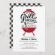 Send guests this modern and fun "Grill and Chill" Rehearsal Dinner invitation for a casual cookout or engagement party! The design features a classic grill illustration with custom typography to emphasize the celebration for the happy couple! The back of the invitation includes black chequered gingham with room to add more information.