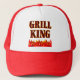 Grill King funny bbq saying in a western flaming font for cooks and cookout chefs. With graphic art of red and orange flames at the bottom of the design. Another original by MomsRetro.