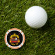 Barbecue grill over flaming charcoal, scroll banner with custom text over fork and spatula. Custom background colour. Custom text on both sides.