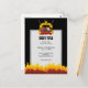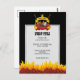 Barbecue grill over flaming charcoal, scroll banner with custom text over fork and spatula.
