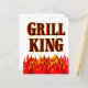 Grill King funny bbq saying in a western flaming font for cooks and cookout chefs. With graphic art of red and orange flames at the bottom of the design. Click Customise It to add your name or message