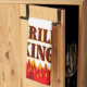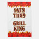Grill King funny bbq saying in a western flaming font for cooks and cookout chefs. With graphic art of red and orange flames at the bottom of the design.