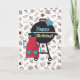 Send sizzling birthday wishes with this bold and fun grill-themed card! Featuring a black grill with "Happy Birthday!" text, surrounded by a pattern of meats, pizza, beer mugs, and more, this card is perfect for anyone who loves to fire up the BBQ. Blank inside for your own message—ideal for foodies, dads, or backyard chefs.