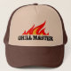 Grill master trucker hat with burning flames Cool barbecue gift idea for men who love BBQ cooking outdoors. Personalise it for chef dad, grandpa, uncle etc.
