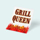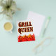 Grill Queen funny bbq saying in a western flaming font for cooks and cookout chefs. With graphic art of red and orange flames at the bottom of the design.