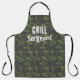 A great bbq apron for U.S. military men/women with this fun quote: "Grill Sergeant". Play on words—Army Drill Sgt. Green Camouflage Pattern. Makes a great gift—a fun gift idea for dad, uncle, grandpa, son, and any women in your life who served. Thank them for their service in this special fun way. White vintage typography. Funny Bbq aprons for him or her.