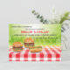 A summertime BBQ party invitation featuring a tradition red and white check tablecloth and realistic-looking burgers and hot dog. (<a href="https://www.vecteezy.com">Illustration credit: Vecteezy</a>). (<a target="_blank" href="https://www.vecteezy.com">Design Credits: Vecteezy.com</a>). (Vector Design by <a target="_blank" href="https://www.vecteezy.com">www.vecteezy.com</a>). <br/><br/>The card is easy to customise with your wording, font, font colour, paper shape options and choice of six paper types.<br/><br/>Not exactly what you're looking for? All our products can be custom designed to meet your needs at no extra charge.<br/><br/>Simply contact us at askcottonlamb@gmail.com.<br/><br/>Coordinating products available: Just ask us!"