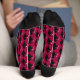 This awesome pair of patterned crew socks features an image of the Grim Reaper created using vectors. He stands menacingly holding his scythe in his bony white hand. His sunken purple eyes and demonic grin are only just visible underneath his black cloak.