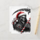 The grim reaper with a candy cane scythe, a bag of presents, and a santa hat horror style Christmas art