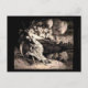 Grim Reaper in black postcard In this vintage woodcut death art by william strange circa 1888 possibly from his " doings of death " series a robed grim reaper carrying a scythe turns away from an idylic shore or river bank with pastural trees and landscape as well as a house in the background.