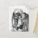 this vintage death art is an illustration from the Rubaiyat of Omar Khayyam by Edmund J Sullivan. here the grim reaper/ angel of Death approaches a woman bearing a large three handled mug dripping blood or some other dark sinister liquid. some interesting detail work here including large feathered wings for the reaper and a bright halo.