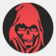 This image features a stylised skull with a hooded cloak, reminiscent of the Grim Reaper. The skull is rendered in a bold, red colour against a black background, creating a striking and ominous visual. The hood obscures most of the skull's face, leaving only the eyes and part of the jaw visible. The eyes are narrowed and seem to be staring directly at the viewer, conveying a sense of menace and foreboding. The overall atmosphere of the image is one of darkness, mystery, and a hint of the macabre.