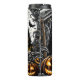 This classic Halloween image features a menacing Grim Reaper with glowing orange eyes and a scythe, looming over several glowing jack-o'-lanterns. A spooky haunted castle is silhouetted against a full moon in the night sky, along with flying bats and swirling fog, creating a chillingly festive scene.