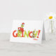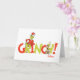 This vibrant and bold graphic is the perfect logo for the holiday mischief-maker! The word "GRINCH!" is displayed in large, stylized letters, primarily in festive red and lime green. The Grinch himself (in his Santa suit) stands right over the letters with his hands on his hips, looking mischievously proud. Beside him, his loyal partner, Max the Dog (complete with reindeer antlers), sits patiently. This fun graphic is a great way to celebrate the iconic characters and their story!