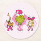 Grinch Crew in Pink Valentine's Portrait Round Paper Coaster
