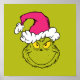 This fantastic, bold illustration is a close-up portrait of the Grinch in full mischievous mode! He has his signature sly grin and bright yellow eyes, but his look is updated with a large, fluffy Santa hat in a fun, unexpected pink/fuchsia colour instead of the traditional red. This graphic is perfect for anyone who loves the holidays but embraces a non-traditional, delightfully grumpy, and colourful style!