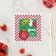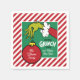 Watch out for those crumbs! This festive little napkin is too cute to use! It's trimmed in the cheeriest peppermint candy cane stripes and stars the one and only Grinch, who just can't resist trying to snag that enormous red ornament. But don't worry—the ornament is safe and sound, specially personalized with your family's name! This napkin adds the perfect touch of "merry GRINCHmas" mischief and sweetness to any holiday party!