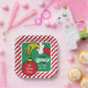 Get ready for some holiday mischief! This adorable paper plate is trimmed in bright, cheerful candy cane stripes and features the one and only Grinch trying to pull a fast one! His fuzzy green hand is reaching right out toward a big red ornament that is sweetly personalized with your family's custom name. Don't worry, he can't steal the fun—the plate shouts "merry GRINCHmas and Happy New Year!" It's the perfect size for holiday treats!