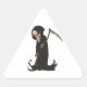 Grinning Grim Reaper with Red Eyes Holding Scythe Triangle Sticker