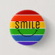 Always wear a smile. This rainbow button has the word 'smile, with a cartoony smile underneath.