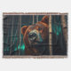 Grizzly Bear, Birches and Aurora Art Throw Blanket