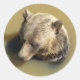 A grizzly bear taking a bath in a muddy pond of water on a hot day. Amazing wild animal in his own environment captured in this photo on this sticker.