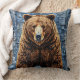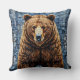 Vibrant artwork depicting a bear with a rich, textured fur coat, set against a patchwork background featuring blue and grey tones. The bear stands imposing and lifelike, capturing attention with its realistic features.