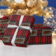 Grizzly Bear Silhouettes Pattern on Plaid Wrapping Paper