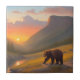 Grizzly Bear Sunset Forest Cabin Lodge Ceramic Tile