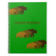 Digitally painted groups of grizzly bears - a cub and its two parents - on a green background. The colour of the background can be easily changed, and you can insert your own title of the notebook.