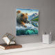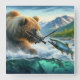 Grizzly Bears with steelhead trout salmon hurdling Square Wall Clock