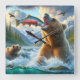 Grizzly Bears with steelhead trout salmon jumping Square Wall Clock