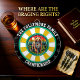 A bold circular artwork of a grizzly bear in the forest, accented by a target.
