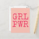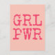 GRLPWR (girlpower) Postcard, with fun quote: 'GRL PWR' in typewriter typography in hot pink.