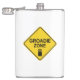 The flask itself is fine. It’s a cheap flask, obviously bought in bulk, however am prepared to overlook that. Given that it is a personalized item, I would have liked to have seen gift boxing instead of the generic packaging. Terrible printing, and/or quality. It’s a cheap, tacky vinyl. It is not cut straight and is also applied in a way that it is overhanging the bottom, causing the glue to catch on items and it will eventually roll and tear, damaging the wrap.