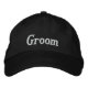 NEW* Embroidered text that reads "Groom" on a great looking cap, matches our Bride Embroidered cap.