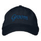 Custom Embroidered Alternative Apparel Basic Adjustable Baseball Cap Hat in Dark Navy Blue Colour with Groom in Royal Blue text typography lettering and digital graphic design by TheFabricSeal print on demand shop at Zazzle.com #ZazzleMade https://www.zazzle.com/store/thefabricseal TheFabricSeal©️Original.