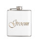 Groom, gold script elegant chic white Flask