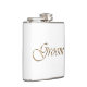 Groom, gold script elegant chic white hip flask
