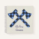 A creative gift for the groom this grey square notebook features a double cross plaid axe with "Groom" written in blue font underneath. The groom's name can be customised above "Groom' in cursive blue font. The back cover is dark blue. Place your order today!