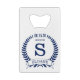 This bottle opener is perfect for the groom. It is traditional yet modern with a blue laurel wreath and banner with the wedding date, title/job and first initial and first name all in blue. They'd be great for a bachelor party or weekend. The title can be changed to best man, groomsman, usher, etc.