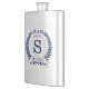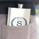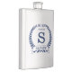 This 8 oz. metal flask is perfect for the groom. It is traditional yet modern with a blue laurel wreath and banner with the wedding date, title/job and first initial and first name all in blue. They'd be great for a bachelor party or weekend. Get one for everybody in the bridal party - they'll love them! The title can easily be changed to best man, groomsman, usher, etc.
