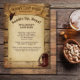 Kick up some dust with this Groom’s Last Rodeo bachelor party invitation! Featuring a rustic wooden background, a light brown vintage parchment centre, a cowboy hat at the top, and boots at the bottom, this design sets the perfect tone for a wild western send-off. Personalise the text to say "Saddle Up Boys, It’s [Name]’s Last Ride"—perfect for customising with the groom’s name, date, and party details. Great for country, rodeo, or western-themed bachelor parties.