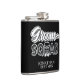The flask itself is fine. It’s a cheap flask, obviously bought in bulk, however am prepared to overlook that. Given that it is a personalized item, I would have liked to have seen gift boxing instead of the generic packaging. Terrible printing, and/or quality. It’s a cheap, tacky vinyl. It is not cut straight and is also applied in a way that it is overhanging the bottom, causing the glue to catch on items and it will eventually roll and tear, damaging the wrap.
