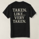Show off your groom status with confidence and humor! This bold and stylish T-shirt features the playful phrase “Taken. Like… VERY Taken.” on the back — perfect for weddings, bachelor parties, engagement events, or honeymoon adventures.