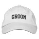 Grooms embroidered cap with the stitched text 'GROOM'. Customisable text, font and colours. Perfect for engagement, bachelor party, wedding day or honeymoon.