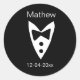 groomsman add name year black bow shirt tie tuxedo classic round sticker