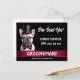 A fun and adorable way to ask your bro to be your groomsman with this graphic of a white French Bulldog looking very dapper in a black top hat and burgundy bow tie sitting behind a horizontal maroon band set against a black background. White text templates for your custom wording appear to the right of the pet dog which may be personalised to suit your wedding.